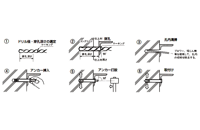 Ang pagtatakda ng angkla sa pamamagitan ng paghampas sa kuko sa angkla. Ang kuko ay nagpapalawak ng hit anchor sa kongkreto upang i -fasten ang mga lids. Ang isang walang tornilyo na angkla ay angkop para sa paglakip ng mga lids at magaan na mga bagay.